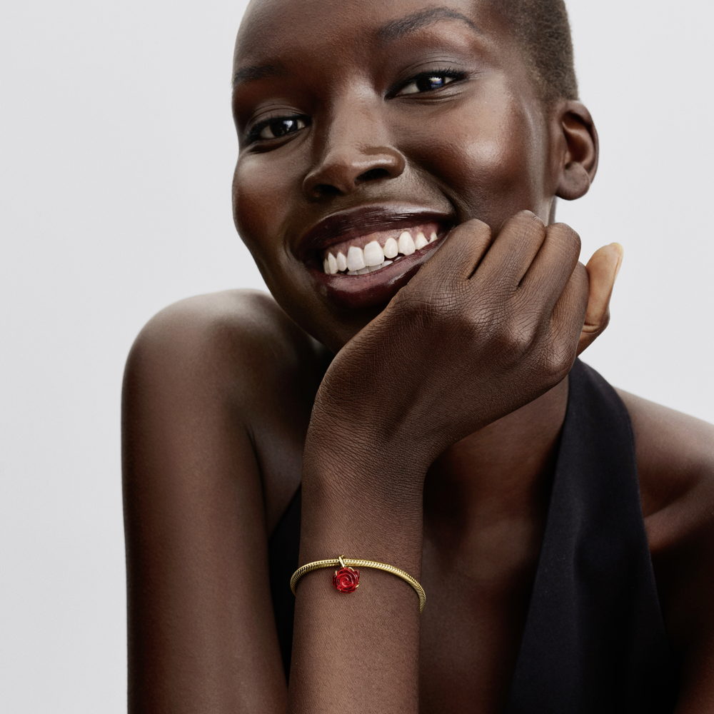 La historia de Bella y la Bestia cobra vida en tres piezas bañadas en oro: un charm de la rosa encantada, un charm inspirado en el personaje de la veladora y un brazalete con motivo de rosa. Joyería que transforma los símbolos del relato en piezas contemporáneas, con un mensaje claro: la verdadera belleza trasciende las apariencias.